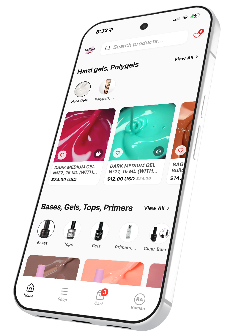 The NBM Supply app puts your favorite professional nail products at your fingertips — with exclusive deals and real-time order tracking.