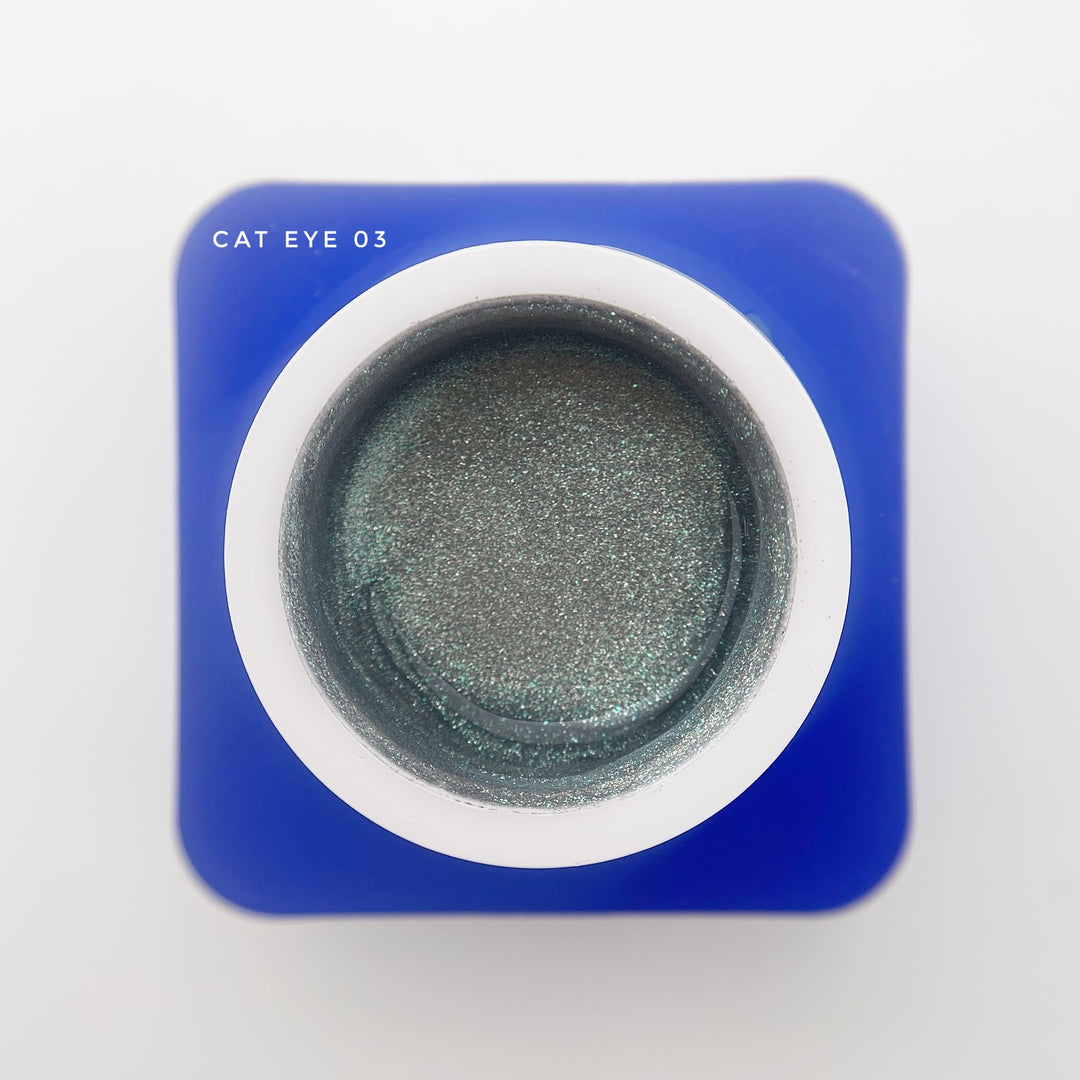 TOUCH CAT EYE – a decorative gel with a cat-eye effect and double shimmer. Looks soft and airy without a base or on light bases, and bright and dramatic on dark bases. Exhibits multidimensional shimmer under different angles and lighting. The gel has a liquid yet viscous consistency, making it economical and easy to use until the last drop. Self-levels without flooding cuticles or sidewalls. Contains metallic particles that react to a magnet, allowing unique highlights before curing. Available in 4 shades. Presented in a 5 ml bottle (without brush).