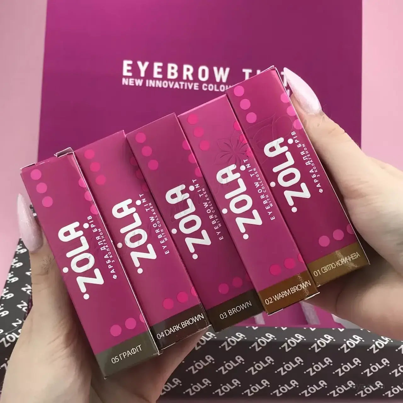 ZOLA НАБІР ТІНТІВ ДЛЯ БРІВ З КОЛАГЕНОМ 5Х15МЛ (5 КОЛІРІВ ТА ОКСИДАНТ) 04904